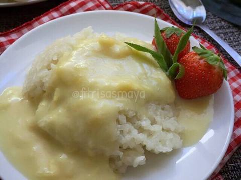 - 300 gram daging durian, tanpa biji, haluskan dengan sendok